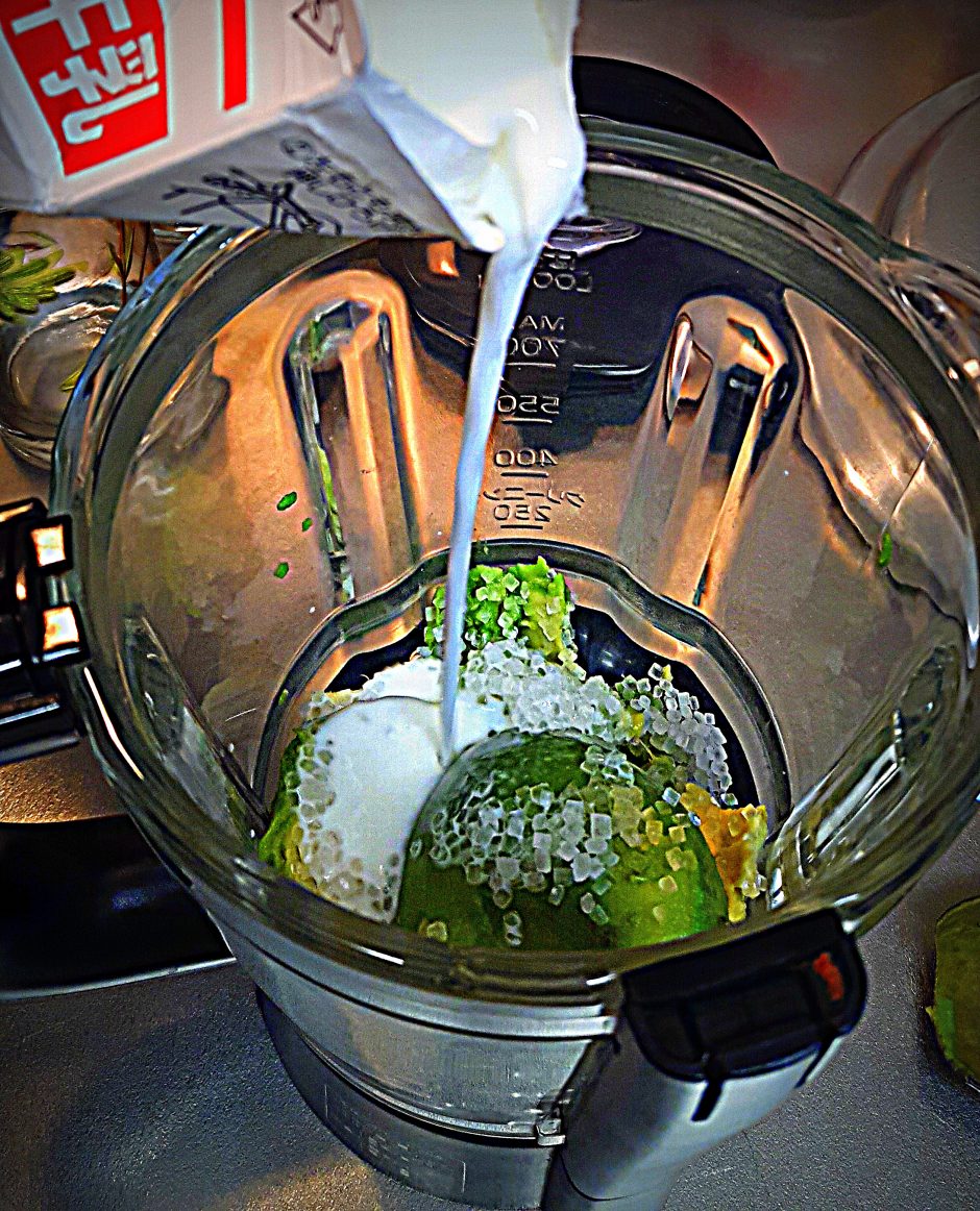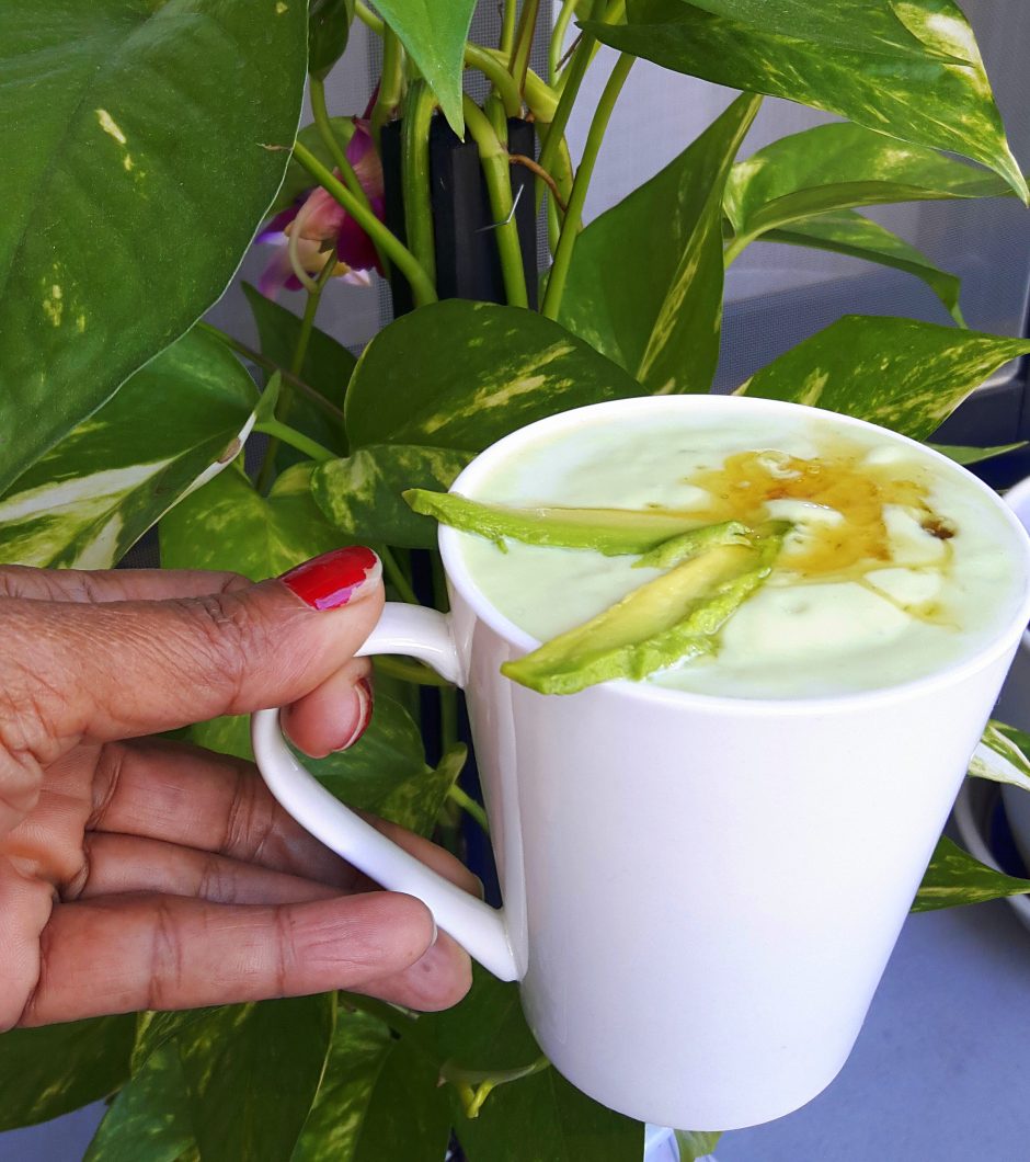 While serving in tumbler garnish with Avocado slices, as in the photo.