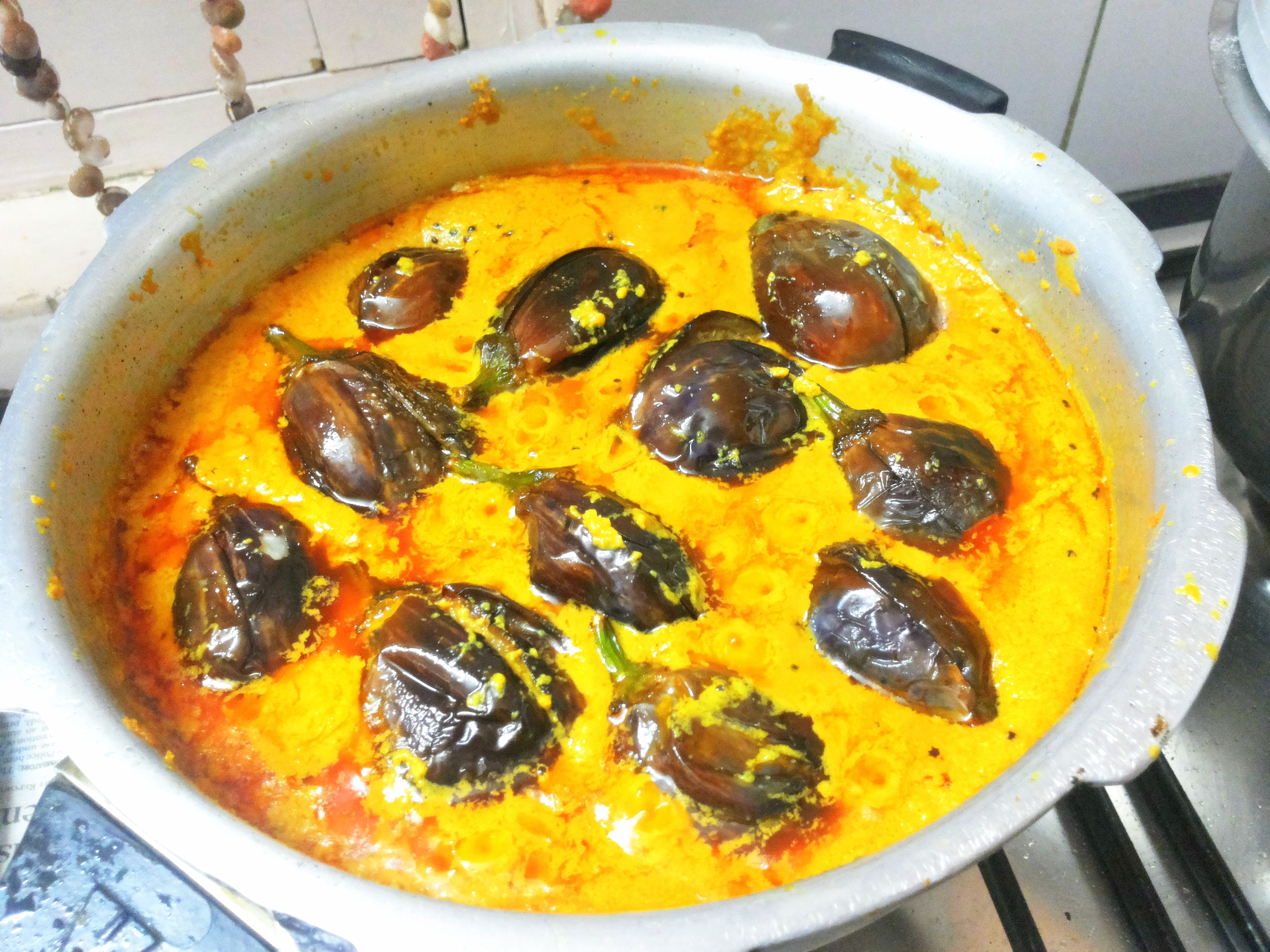 Baghare baigan (brinjal masala) by Nag Ratna Sahu is licensed under a Creative Commons Attribution-NonCommercial-ShareAlike 4.0 International License.