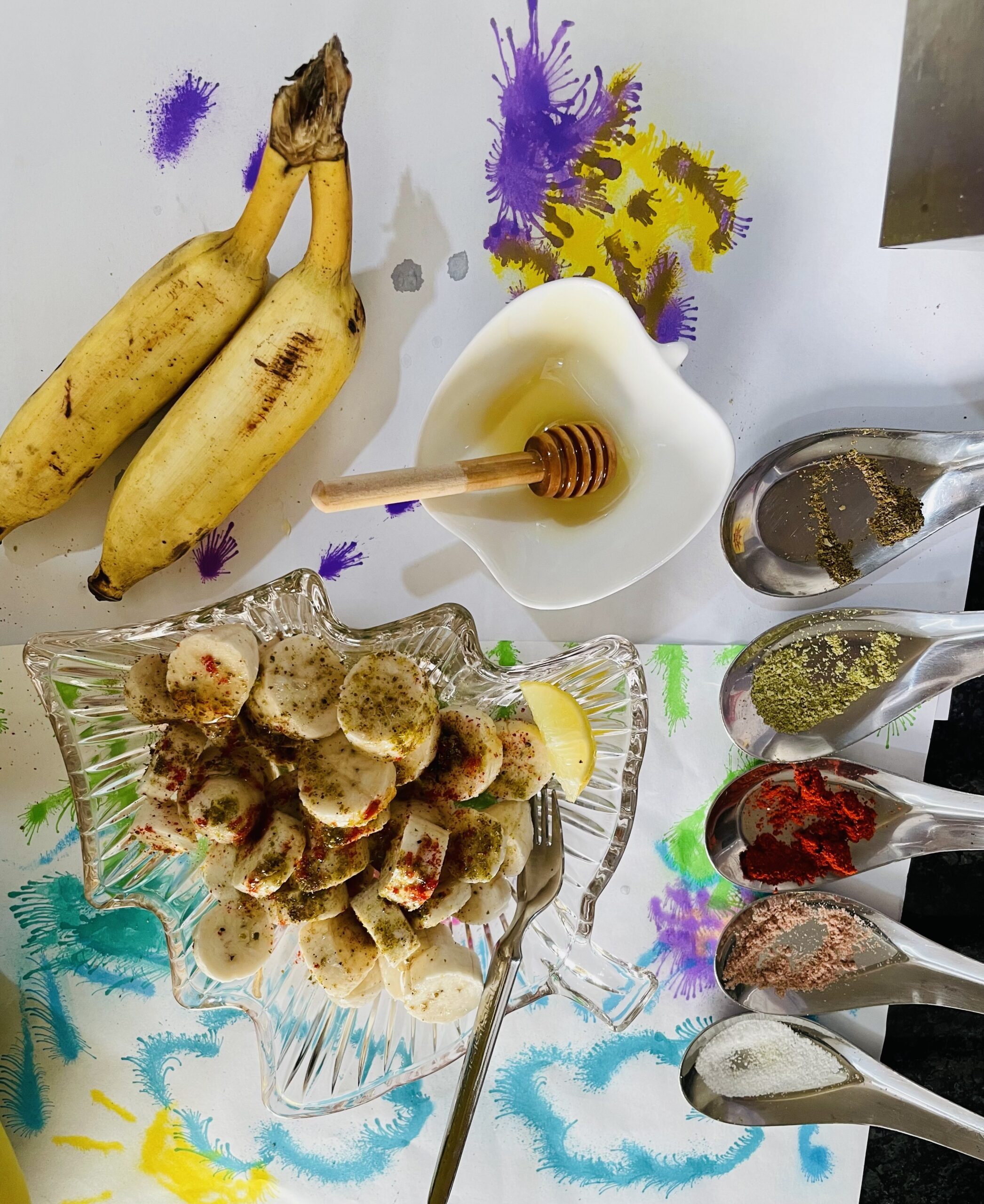 In this banana chaat, I used lemon juice and honey to create a perfect balance of tanginess and mild sweetness.