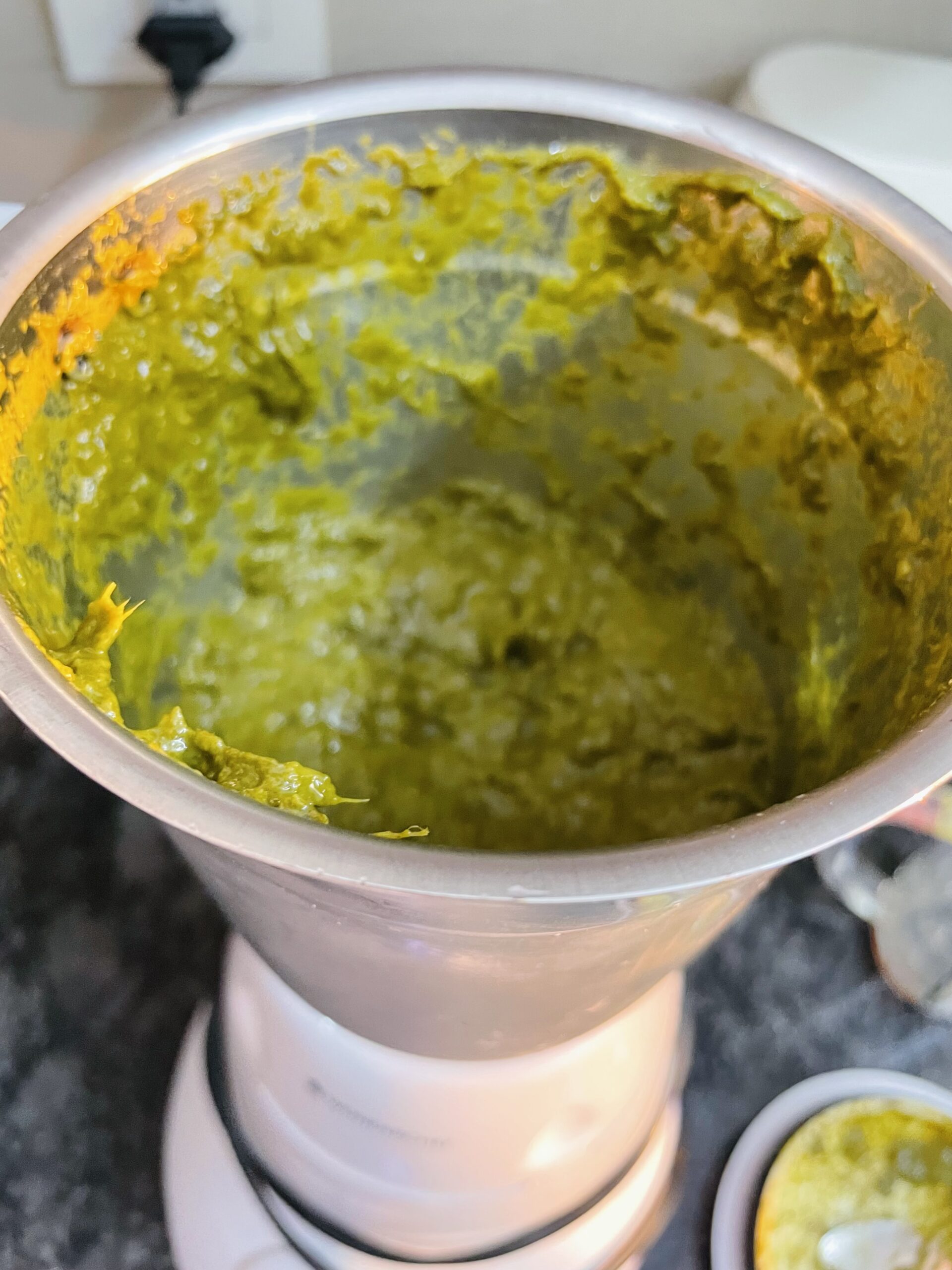 4. Pulverize this with wooden roller or hand blender to make paste. You may grind it in mixer grinder; keep aside.