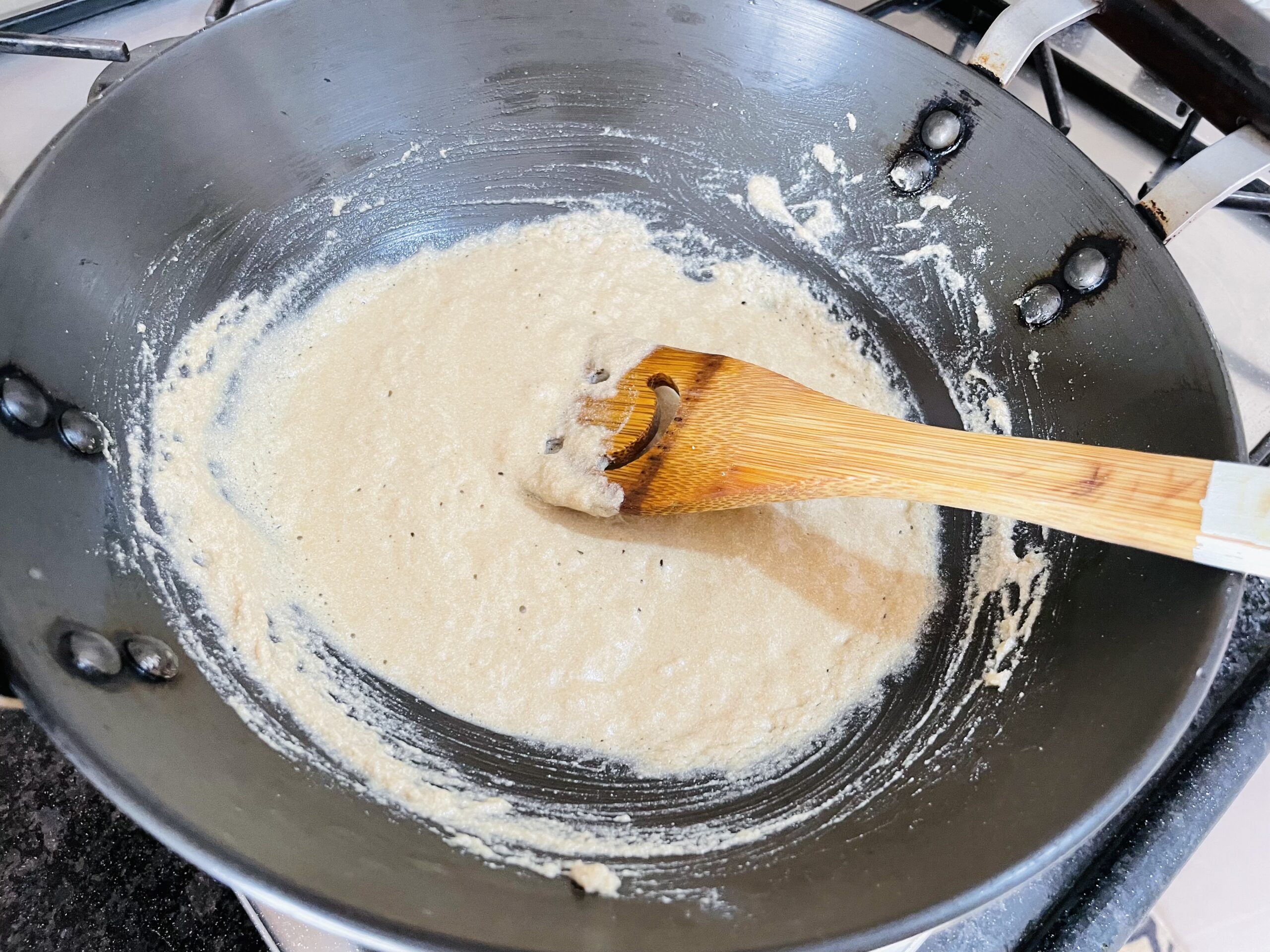 add Rajgir flour; roast flour on low flame