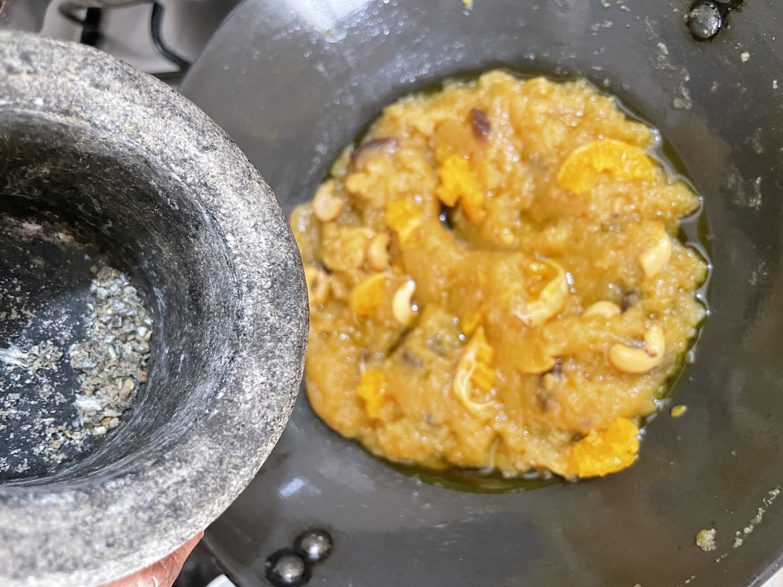 While the halwa being cooked, the aroma becomes wonderfully fragrant, with hints of cardamom blending with the fresh orange notes.