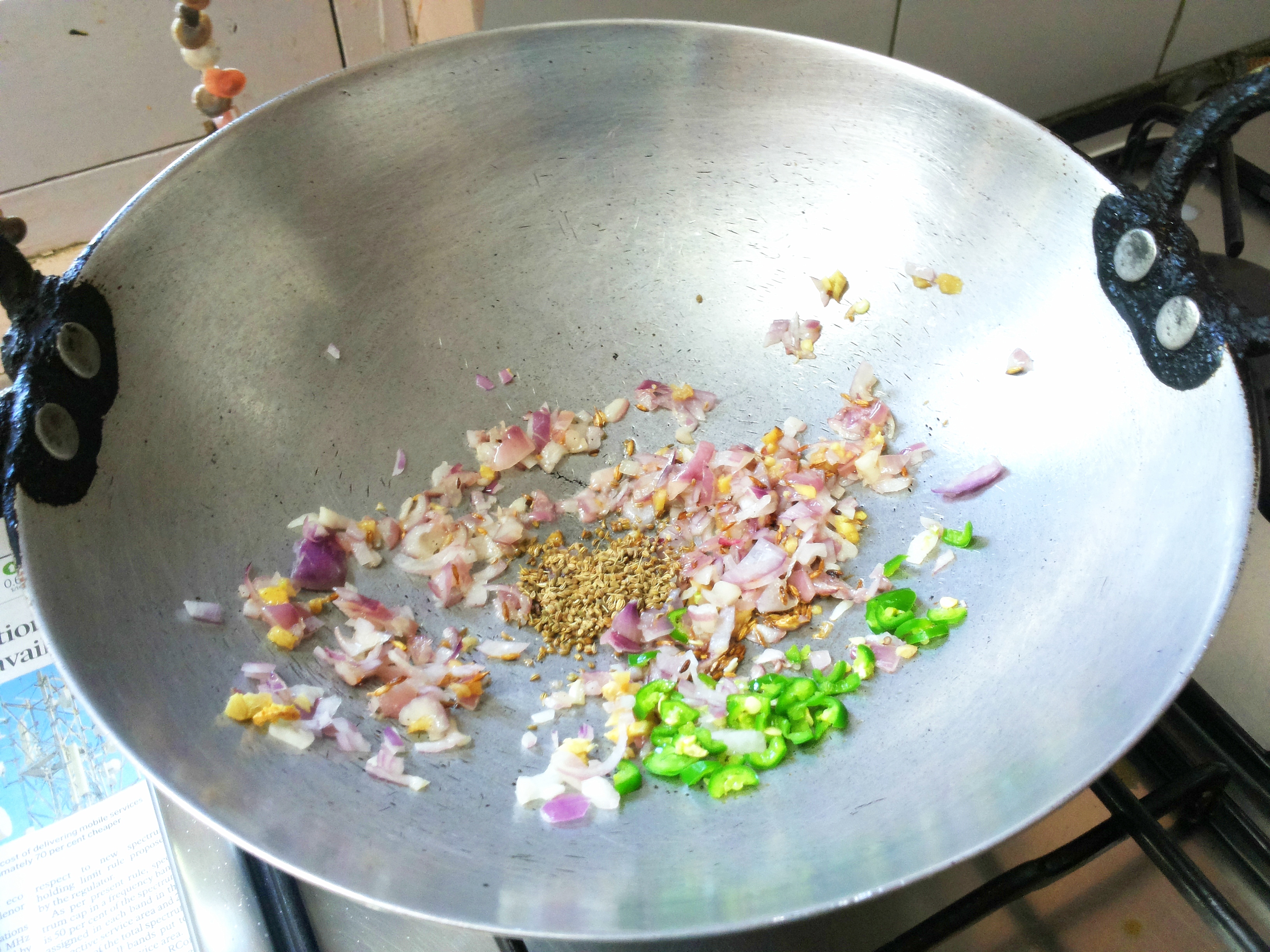 2. Chop onion, ginger and green chilli into very small pieces. Keep aside.