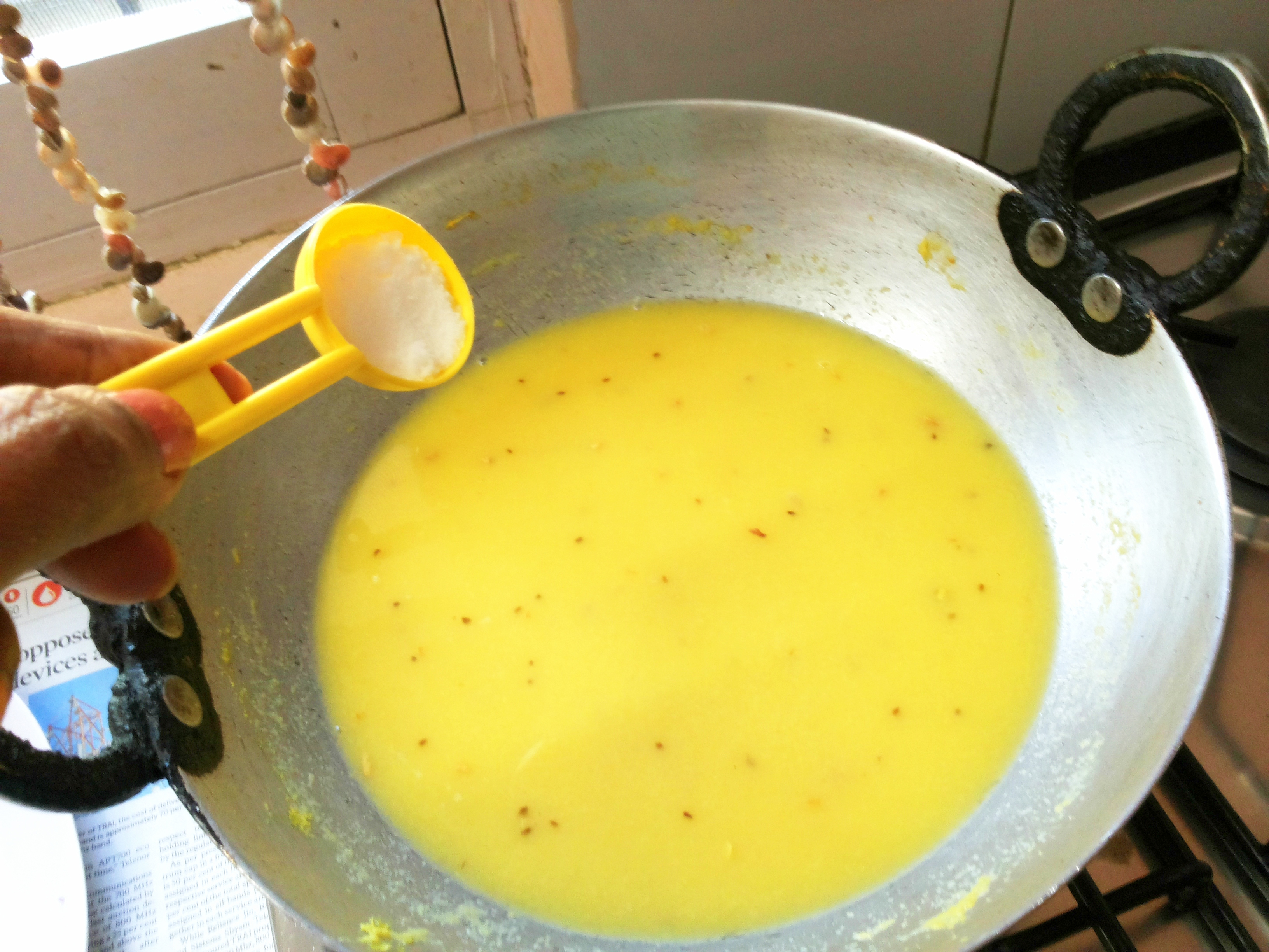 6. Add water slowly (stir to mix well, so that lumps formation is avoided).