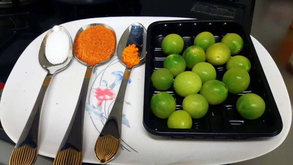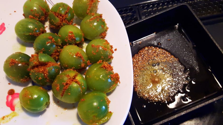 Green (tender) tomato sabji (Kachche tamatar ki sabji) by Nag Ratna Sahu is licensed under a Creative Commons Attribution-NonCommercial-ShareAlike 4.0 International License.