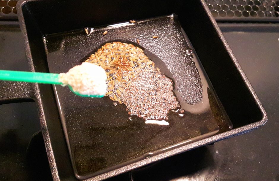 - Take a nonstick fry pan. Put oil in it. Heat oil till smoke begins to come, season with cumin, mustard seed and Asafoetida powder.
