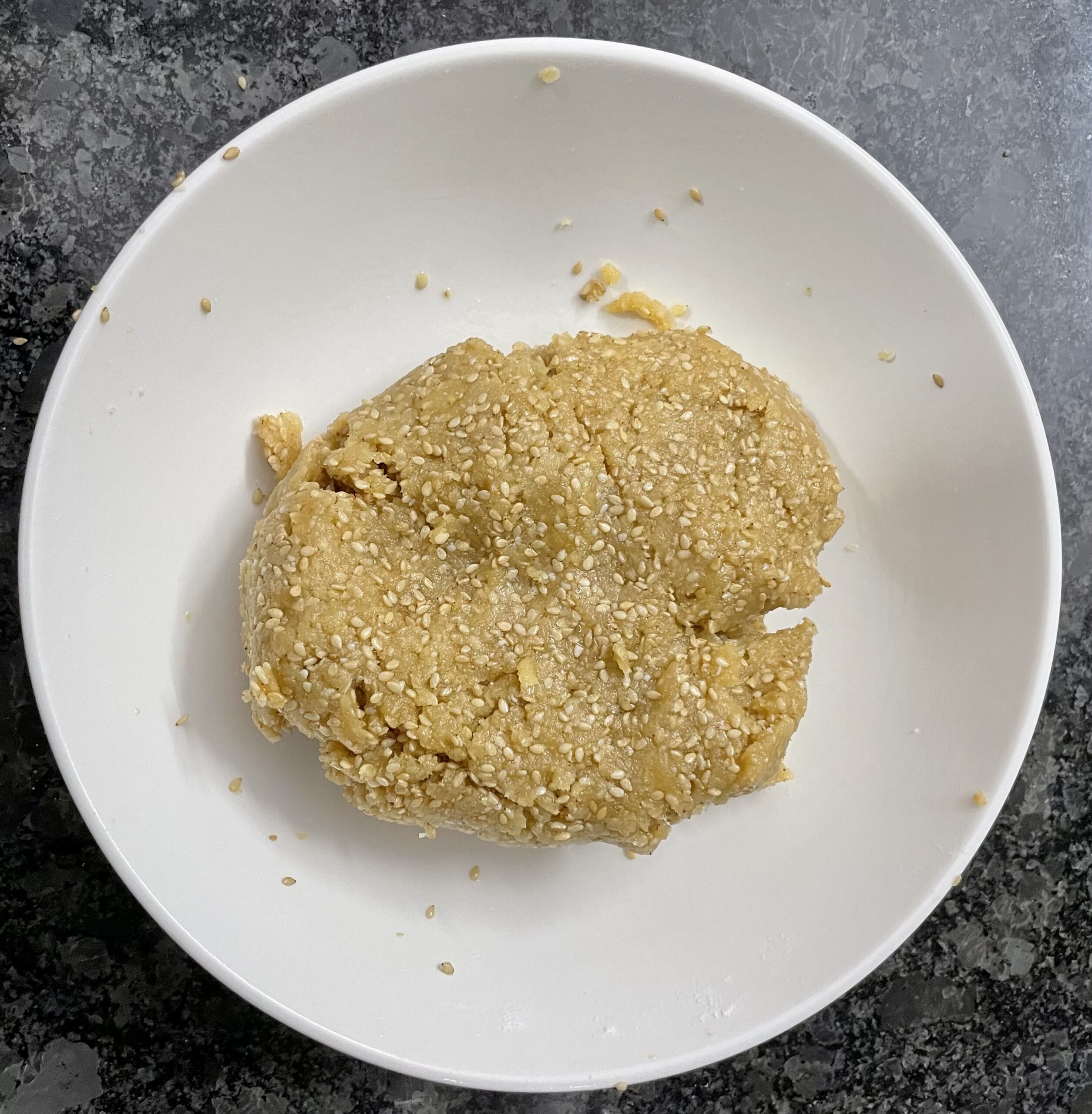 - Add blended sesame seed and sugar powder, stir and mix well, dough is ready to be shaped.