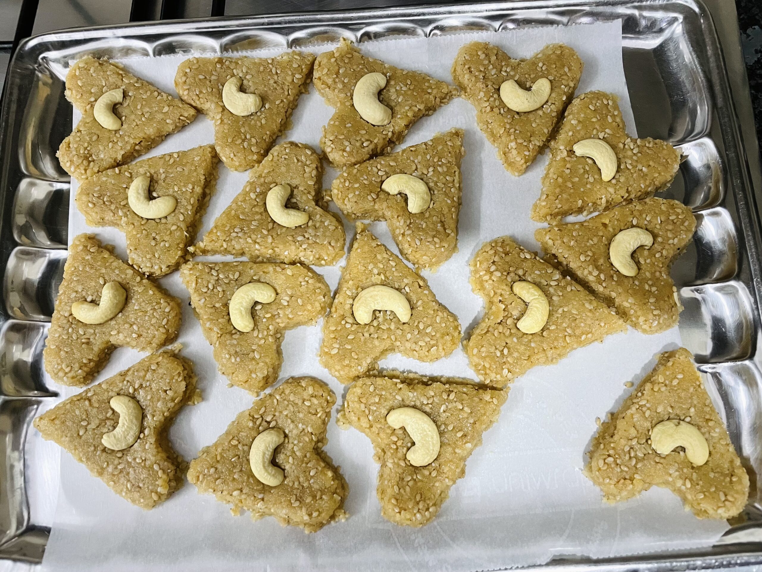 - “Khoa Til Hearts (Sesame & Khoya Delight)” is ready to eat.