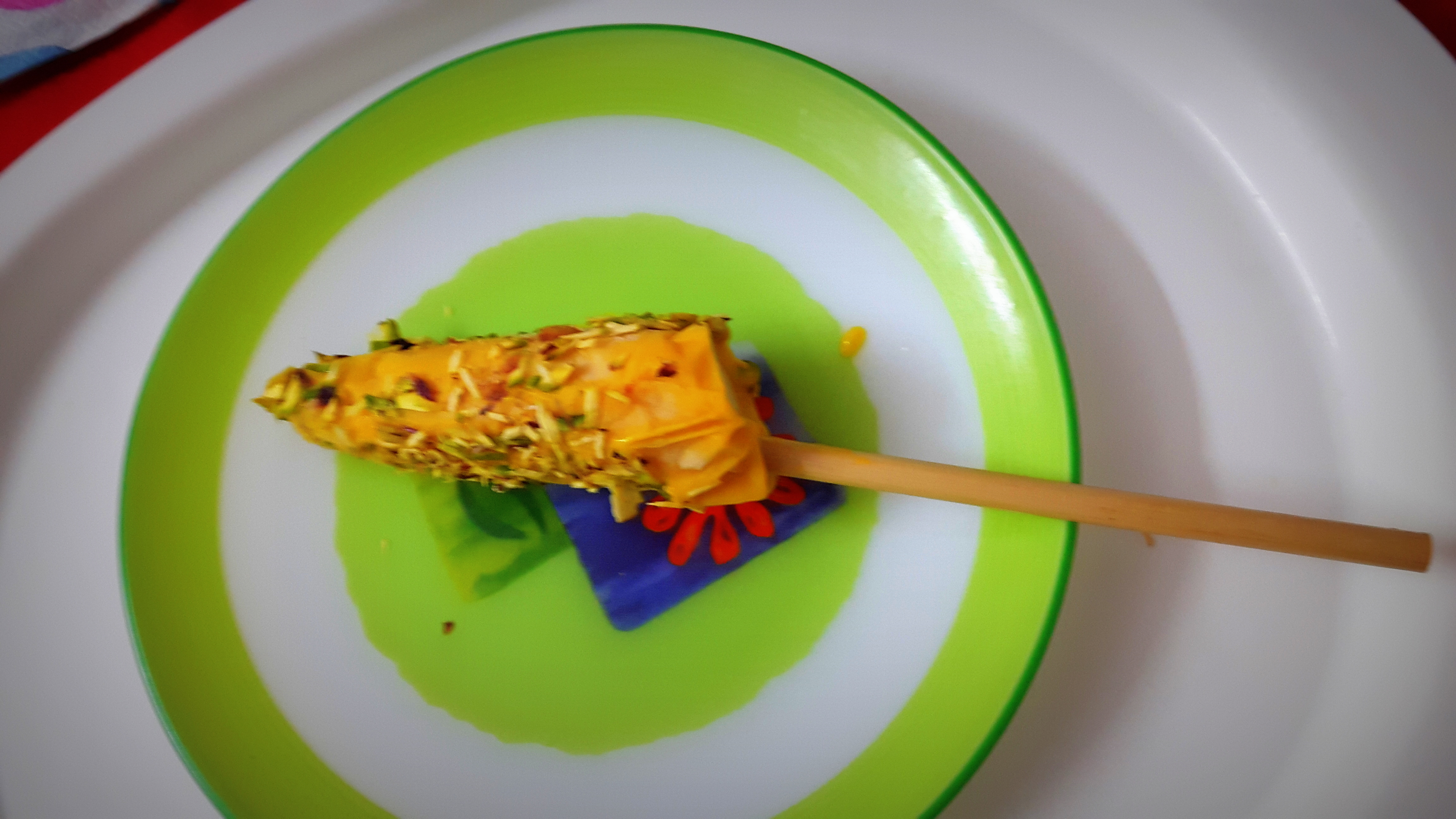 - Now, Mango kulfi is ready to serve, you can serve directly or sprinkle few sliced pistachio over it..