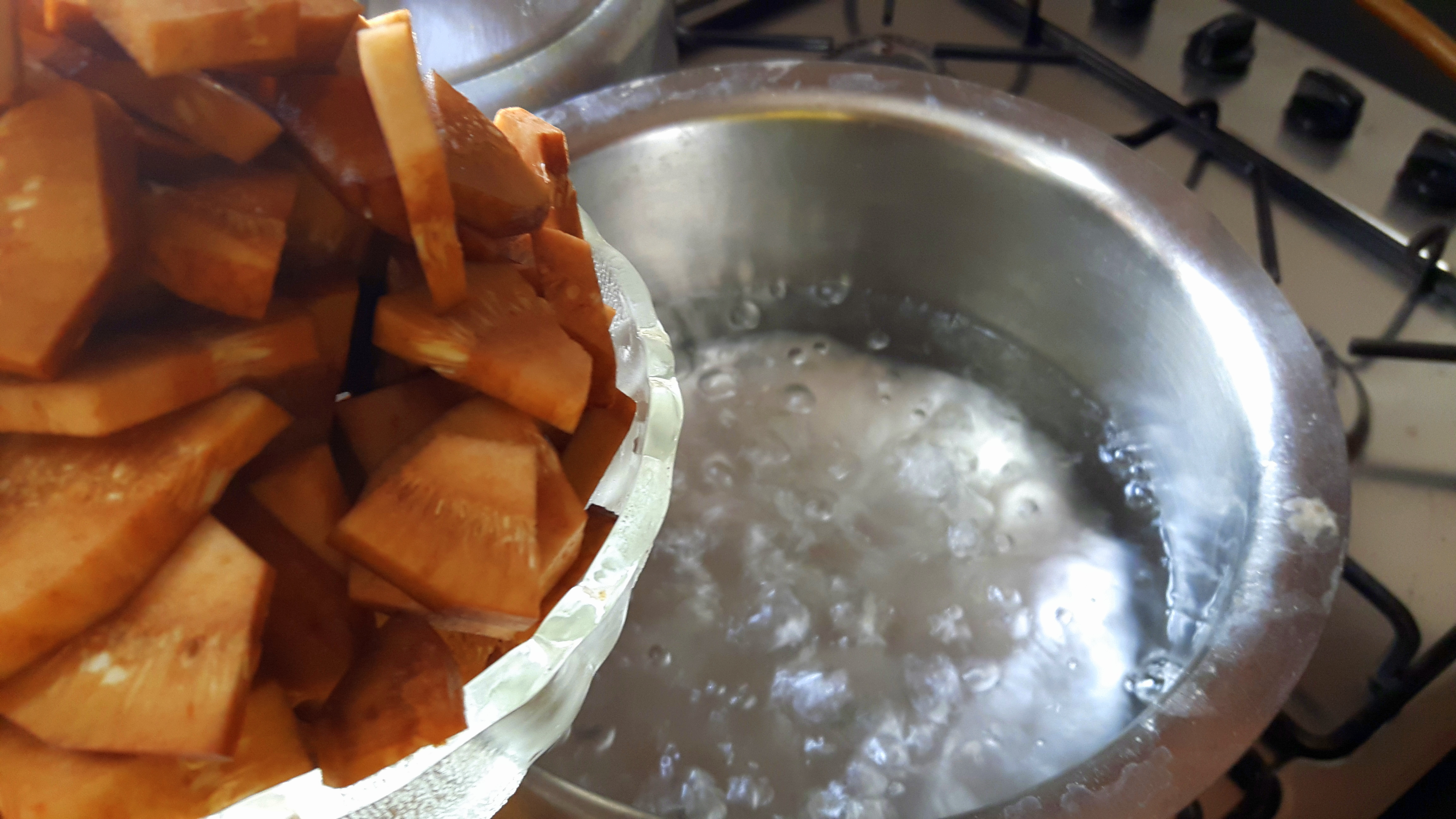 Blanch by putting raw jackfruit into the boiling water