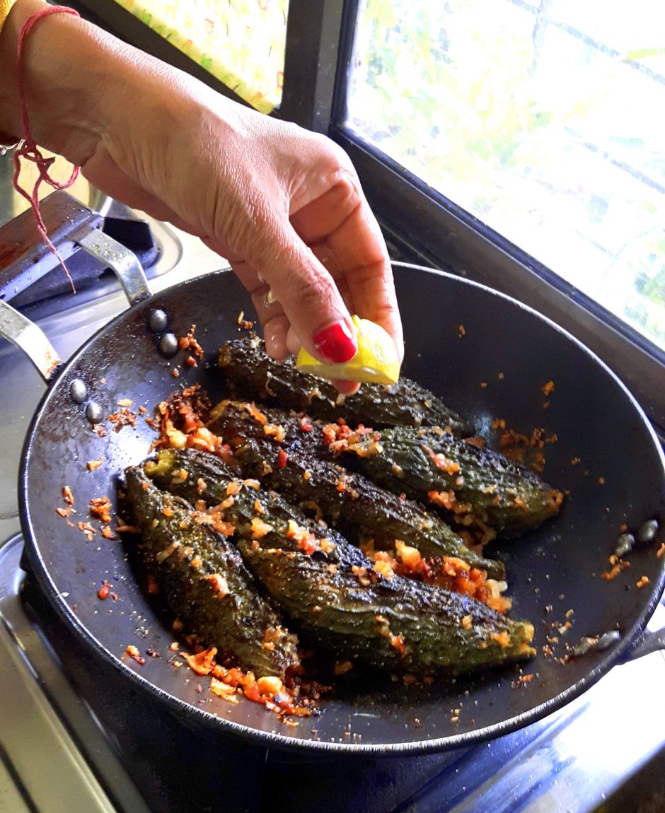 - Add lemon juice; “Royal Stuffed Bitter Gourd (Shahi Bharwan karela)” is ready to serve.