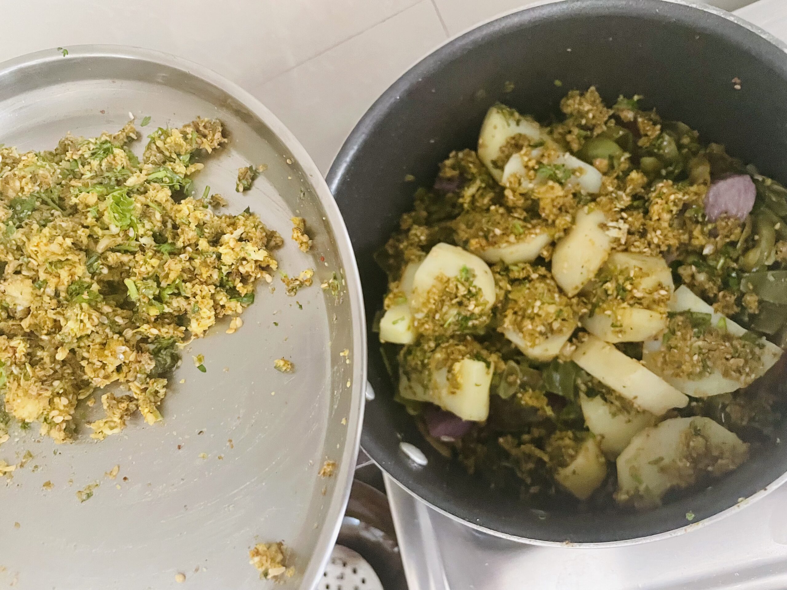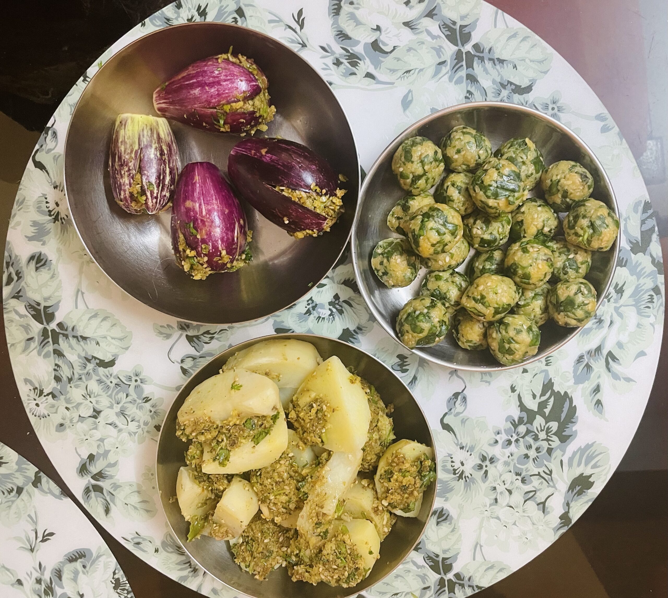- Stuff eggplant and potato with prepared stuffing, keep aside.